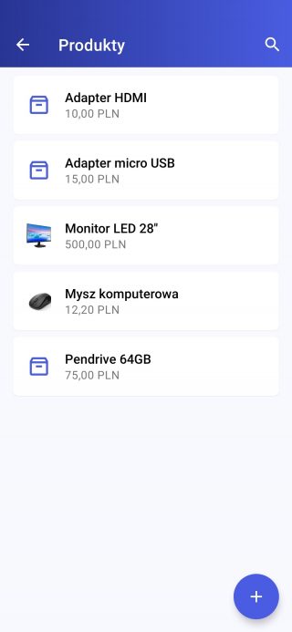 • za pomocą aplikacji przeglądarkowej – wybierając opcję „Dodaj” na liście produktów,
