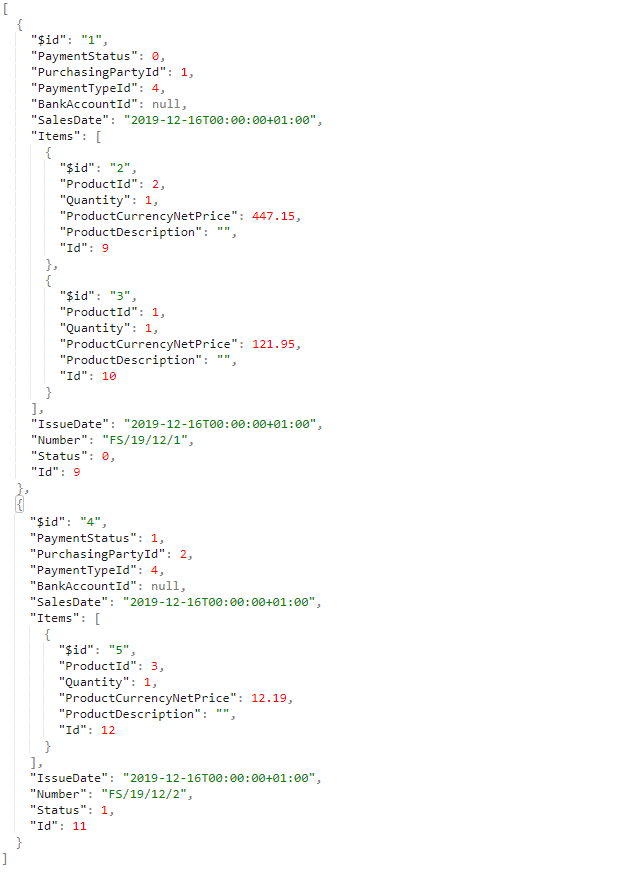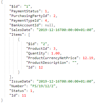W odpowiedzi zostanie wysłane ID dodanego dokumentu faktury sprzedaży.