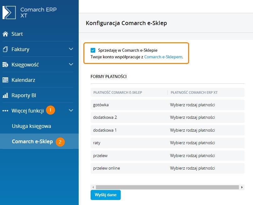 – otworzyć stronę: Więcej funkcji > Comarch e-Sklep > Konfiguracja