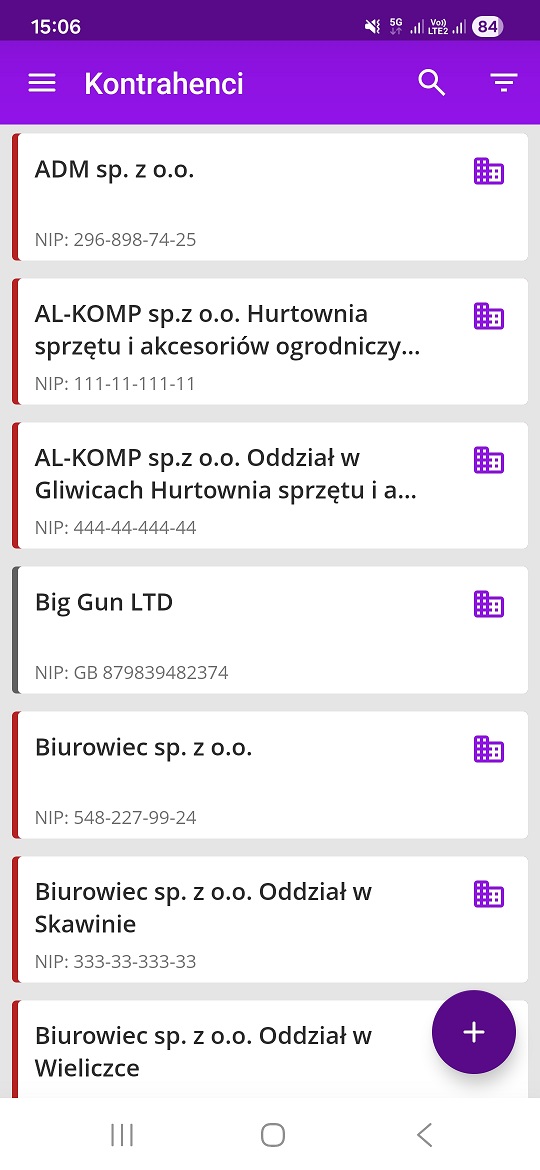 - aplikacji mobilnych w menu Więcej – Kontrahenci.