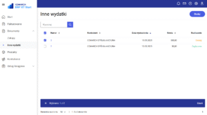 Dodawanie innego wydatku dostępne jest na liście Inne wydatki. Klikając odpowiednio w opcję „Dodaj” można wczytać nowy dokument z pliku. Do dodawania dokumentów jest wykorzystywana usługa Comarch OCR&KSeF na zasadzie skanera dla dokumentów.