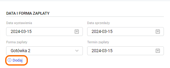 - Pojawi się lista form płatności, aby dodać nową wybieramy opcję Dodaj