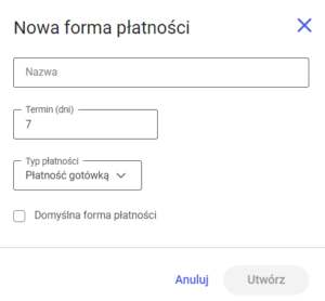 - uzupełnić nazwę nowej płatności oraz termin. Termin będzie proponowany na dokumentach, na których zostanie wskazana ta forma płatności