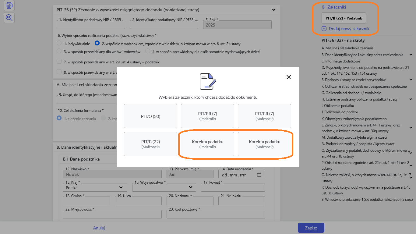 Jak dodać załącznik Korekta podatku do deklaracji rocznej PIT-36L(21) oraz PIT-36(32)?
