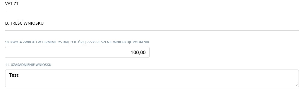 VAT-ZT – zostaje dołączony w przypadku jeżeli termin zwrotu nadwyżki podatku miałby być krótszy niż 25 dni