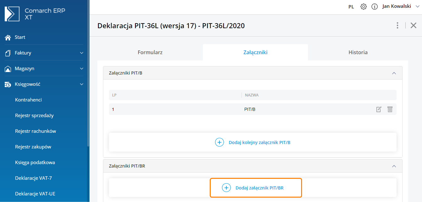 PIT/BR (4) to załącznik do deklaracji PIT-36L (17) oraz PIT-36 (28) (dostępny w zakładce Załączniki na formularzu PIT-36L oraz PIT-36) – wraz z możliwością wydruku.