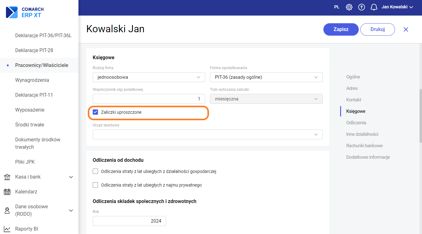 W tym artykule opisaliśmy możliwość naliczenia uproszczonej zaliczki na PIT-36. Funkcja jest dostępna dla pakietu z Księgą Podatkową/Księgą Handlową.
