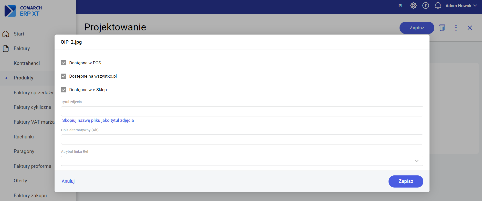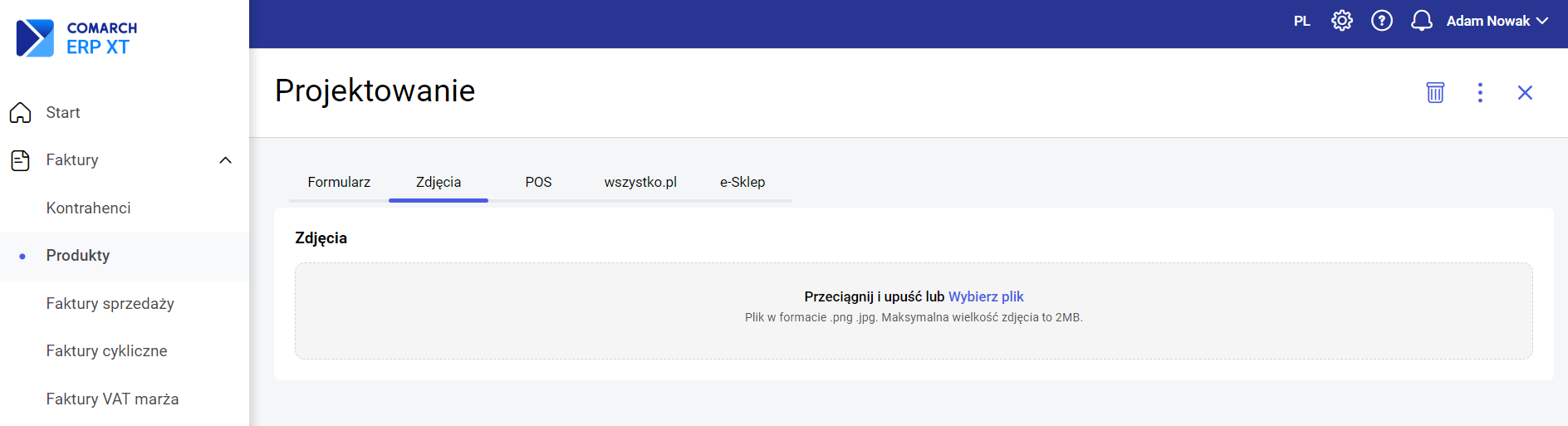 Krok drugi – otwiera się karta produktu. Na niej wybieramy zakładkę Zdjęcia. Pliki ze zdjęciami można dodać na dwa sposoby: