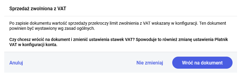 Sprawdzanie limitu wartości sprzedaży zwolnionej z VAT