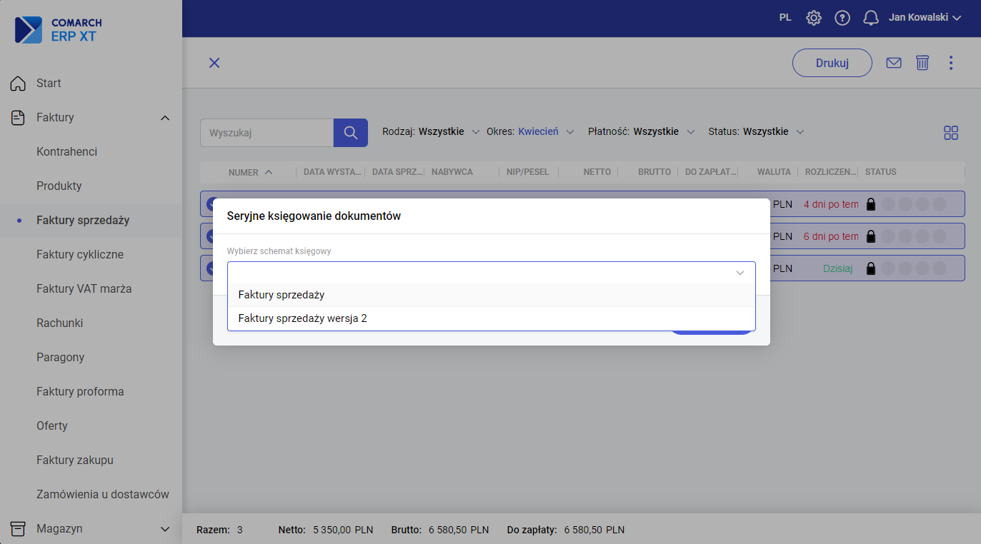 W module Księga Handlowa możemy księgować dokumenty automatycznie podczas ich zatwierdzania/zapisywania bądź też z listy. Księgowanie z listy może być dla pojedynczych dokumentów bądź też seryjnie. W tym artykule opisaliśmy w jaki sposób możemy seryjnie księgować dokumenty na przykładzie Faktur Sprzedaży.