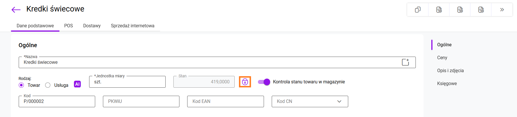 Krok pierwszy – na karcie produktu klikamy na ikonkę kłódki w celu odblokowania pola ilości.