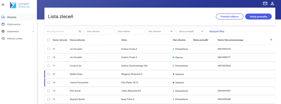 Comarch Shipping to platforma umożliwiająca współpracę z firmami kurierskimi. Za jej pośrednictwem można przygotować listy przewozowe, nadawać przesyłki i śledzić ich status.