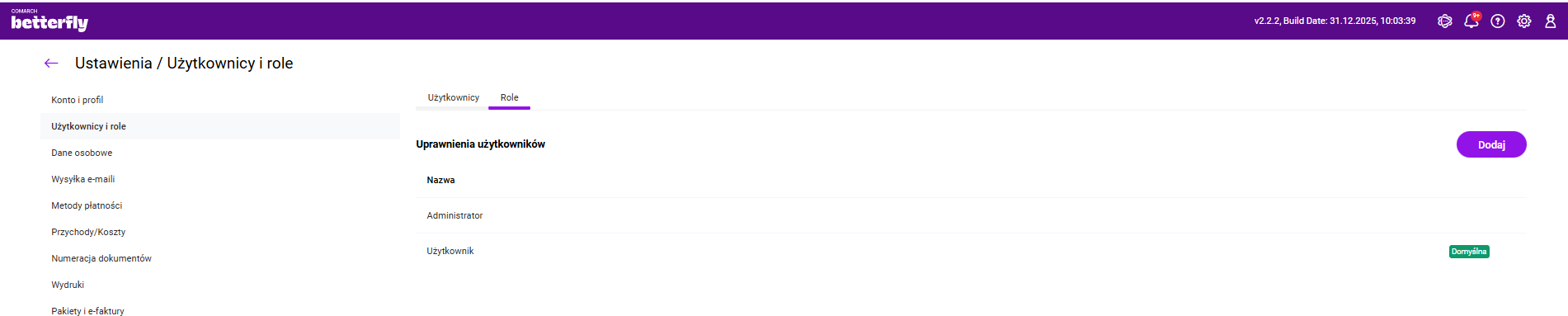 Comarch Betterfly umożliwia nadawanie Użytkownikom uprawnień do korzystania z funkcji dostępnych w programie.