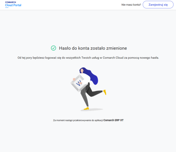 Krok trzeci – po otrzymaniu maila należy kliknąć zamieszczony w nim link. Pojawi się okno, gdzie trzeba wpisać nasze nowe hasło. Warto zapoznać się z wymaganiami dotyczącymi haseł, by nasze dane były odpowiednio zabezpieczone. Po wpisaniu hasła klikamy „Dalej”. Otrzymamy komunikat, że nasze hasło zostało zmienione i automatycznie zostaniemy zalogowani do programu.