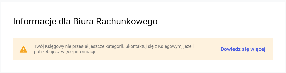 „Twój Księgowy nie przesłał jeszcze kategorii. Skontaktuj się z Księgowym, jeżeli potrzebujesz więcej informacji.”