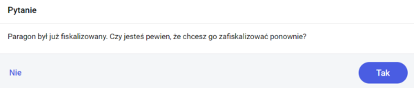 Wybór opcji „TAK” spowoduje fiskalizację paragonu i zamknięcie formularza.