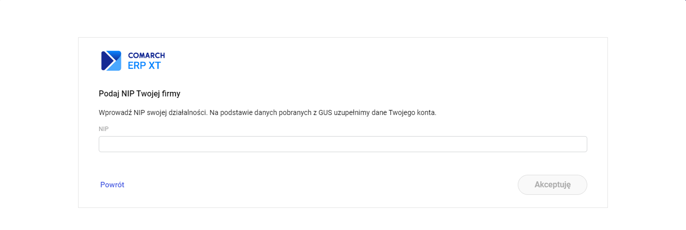 Po podaniu numeru NIP program automatycznie pobierze nasze dane z GUS oraz da nam możliwość ręcznego zmodyfikowania i uzupełnienia naszych danych.