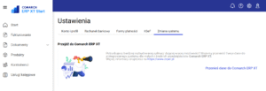 Aby przenieść dane z aplikacji Comarch Betterfly moduł eFaktury do programu Comarch Betterfly należy po zalogowaniu się na wersję przeglądarkową w sekcji Ustawienia – Zmiana systemu skorzystać z opcji Przenieś dane do Comarch Betterfly.
