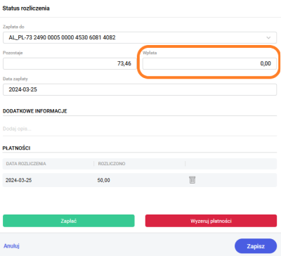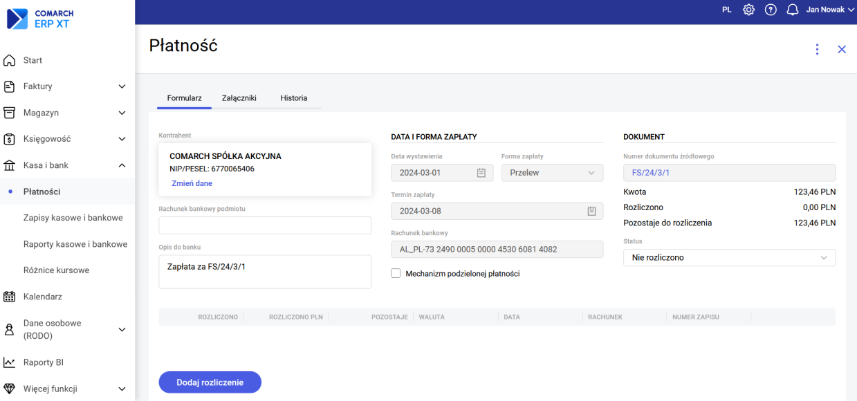 W tym celu należy odnaleźć płatność i wejść na jej formularz. Następnie wybrać Dodaj rozliczenie.