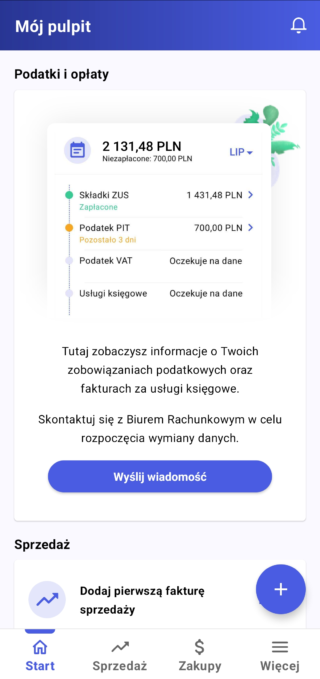 - na pulpicie aplikacji będzie można odczytać informacje o podatkach i opłatach przesłanych przez Biuro Rachunkowe