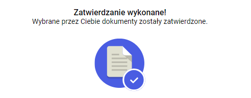 Jeżeli wszystkie dokumenty zostaną zatwierdzone poprawnie na ekranie pojawi się stosowna informacja.
