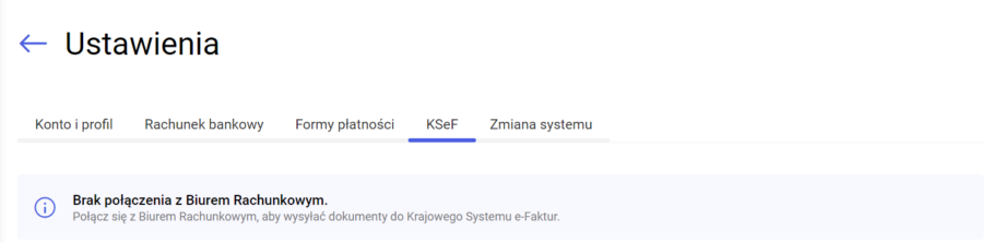 Pole na wpisanie tokenu jest dostępne jeśli konto współpracuje z Biurem Rachunkowym. W przeciwnym wypadku w konfiguracji pojawi się odpowiedni komunikat: