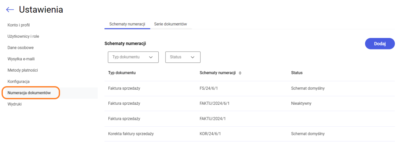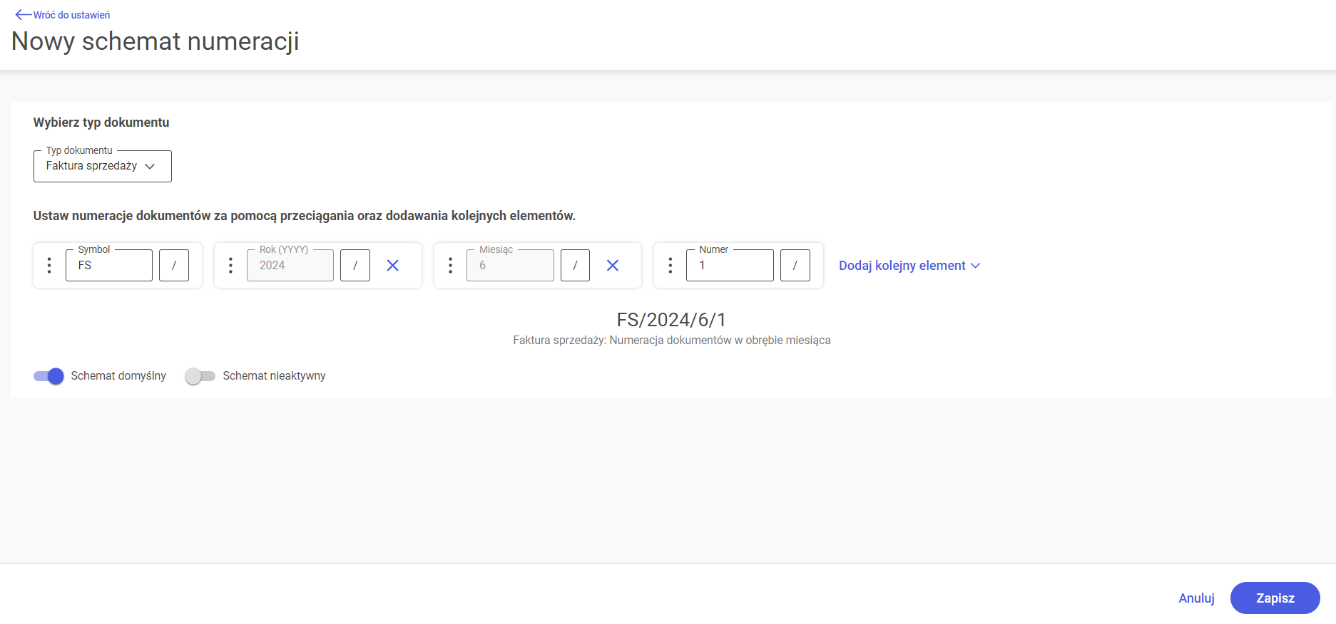 – schemat oznaczony jako domyślny jest proponowany na nowo wystawianych dokumentach,