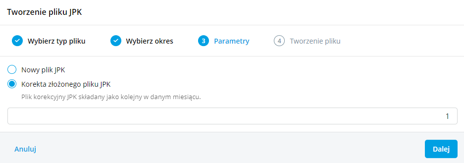 Ważne! Parametr Korekta dotyczy tylko pliku JPK_VAT.