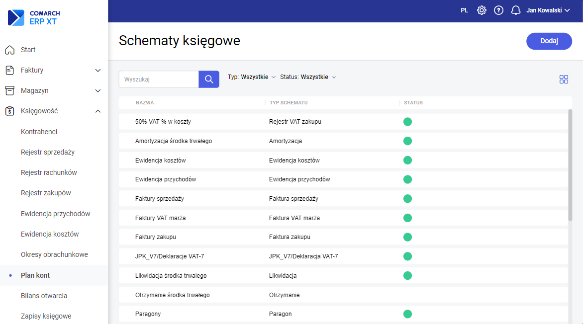 Aby dodać własny schemat księgowy należy kliknąć przycisk „Dodaj” i uzupełnić formularz podając w pierwszej kolejności: