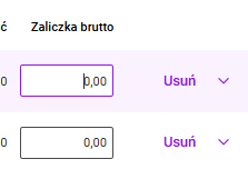 - na wszystkich zaliczkach powiązanych zawsze jest ta sama waluta. Nie ma możliwości zmiany waluty na kolejnej zaliczce powiązanej, możliwa jest jedynie zmiana daty i kursu