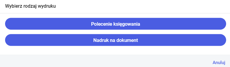 Z poziomu formularza zapisu księgowe jest możliwe utworzenie wydruku:
