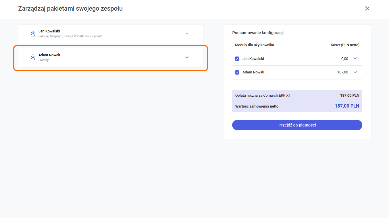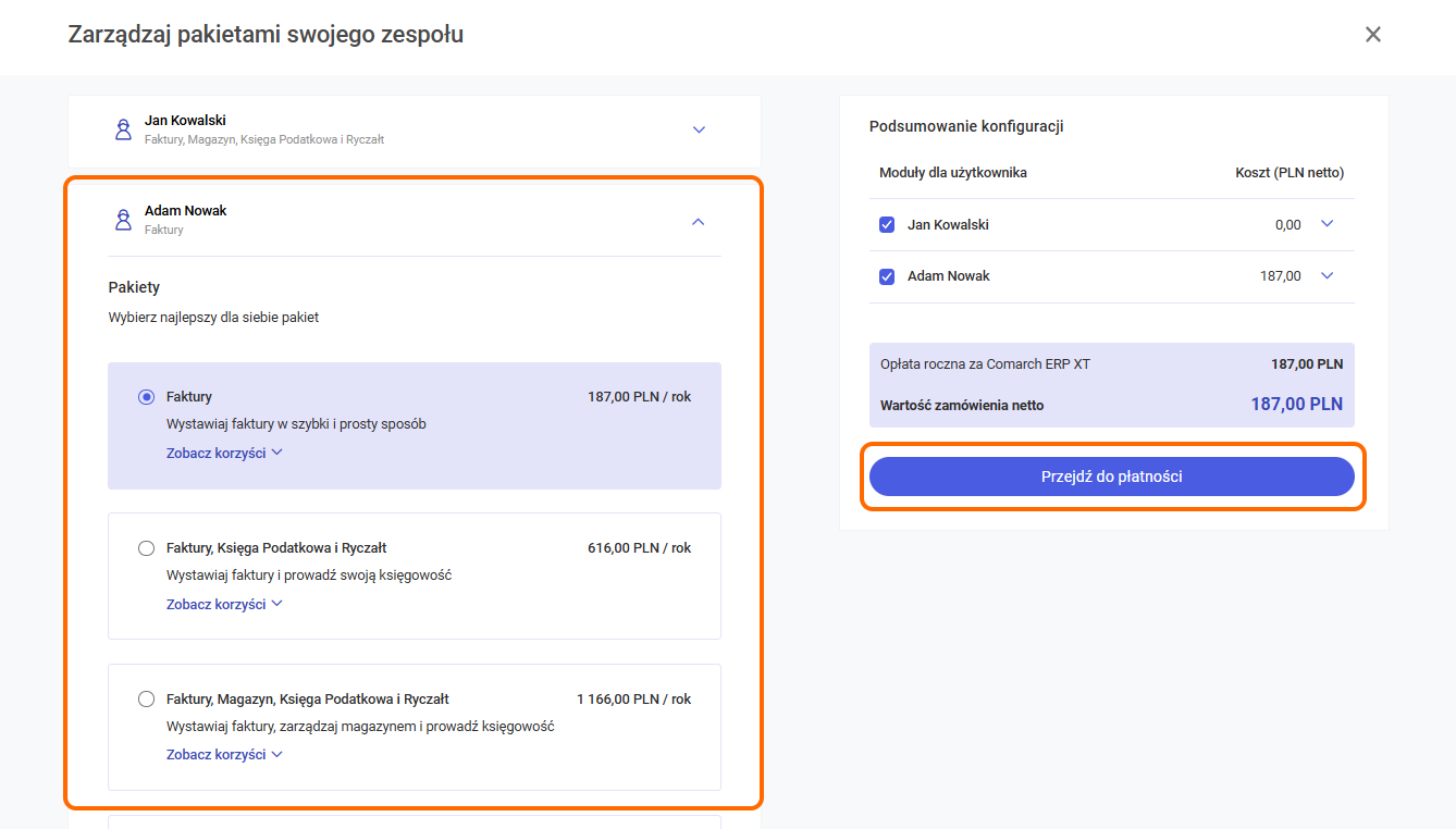 Aby wykupić pakiet dla kont z kilkoma Użytkownikami: