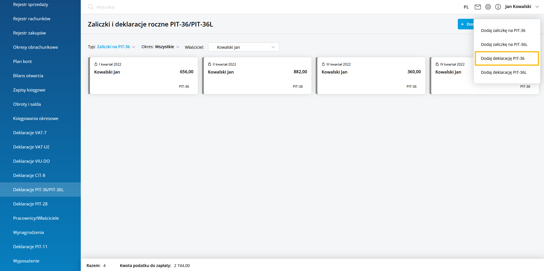 W tym artykule opisaliśmy możliwość wyliczenia deklaracji rocznej PIT-36 na formularzu obowiązującym do rozliczenia za rok 2022. Funkcja jest dostępna dla pakietu z Księgą Podatkową/Księga Handlową.