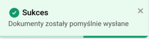 Poprawny eksport danych zakończy się komunikatem Dokumenty zostały pomyślnie wysłane.