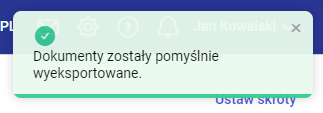 Poprawny eksport danych zakończy się komunikatem Dokumenty zostały pomyślnie wyeksportowane.