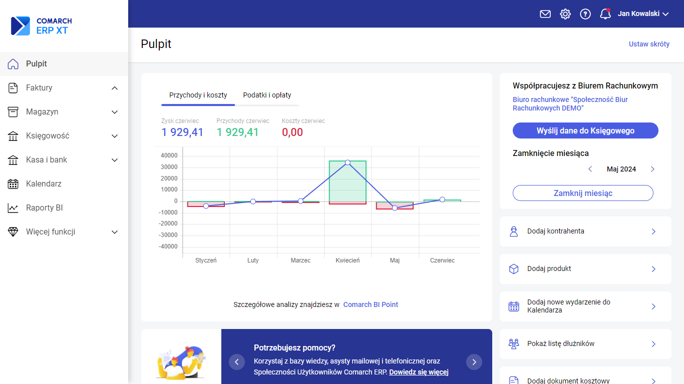 Krok pierwszy: wybierzemy w menu Pulpit ,a następnie klikniemy na kafelek Wyślij dane do Księgowego.