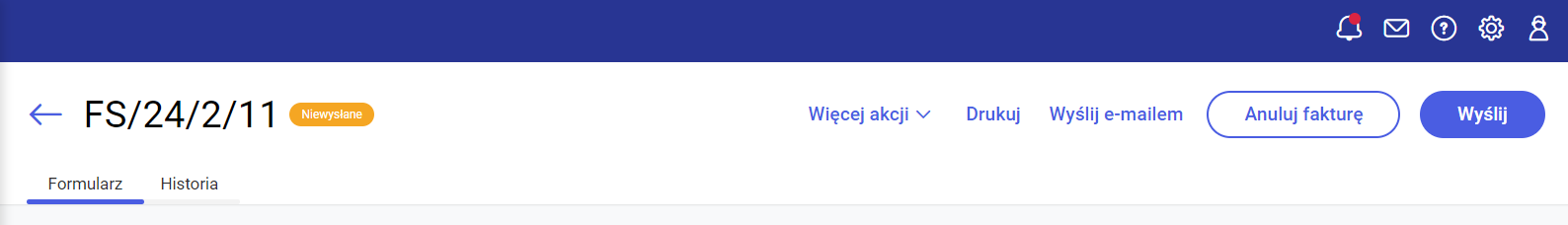W takiej sytuacji możliwa jest jego ponowna wysyłka bądź można taki dokument anulować. Obie opcje dostępne są z poziomu formularza dokumentu: