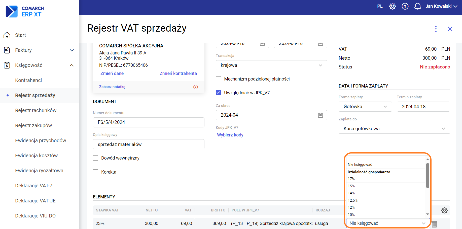 Jak zobaczyć zapis w ewidencji ryczałtowej?