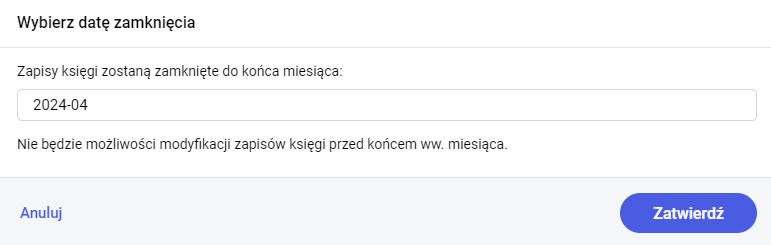 Krok drugi – określić właściwą datę, z którą chcemy zamknąć zapisy w księdze (np. miesiąc 04, rok 20XX).