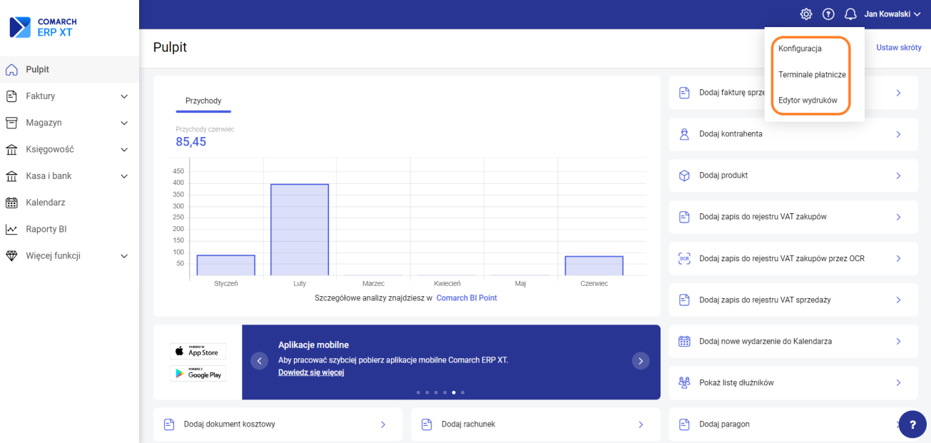 Zmiana języka interfejsu jest możliwa z poziomu Konfiguracji.