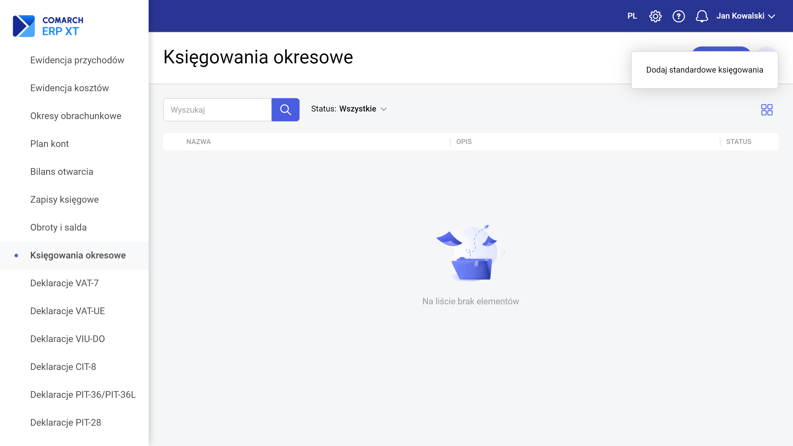 Księgowania okresowe to dodatkowe narzędzie pozwalające na automatyzację prac w księgowości związanych z cyklicznym wykonywaniem księgowań: miesięcznych, kwartalnych, rocznych itp. Funkcja pozwala na zdefiniowaniu schematów księgowań, które służą do wielokrotnego księgowania określonych kwot na określone konta księgowe. Najczęściej wykorzystywane są na koniec miesiąca do rozliczenia kosztów oraz rozliczenia podatku VAT jak również do przeksięgowania przychodów, kosztów na wynik finansowy.