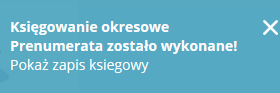 W przypadku gdy księgowanie okresowe zostanie wykonane poprawnie, to po zalogowaniu się przez Użytkownika do programu na ekranie startowym wyświetli się informacja: