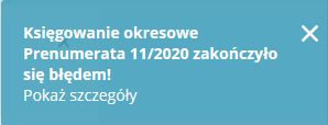 Na zakładce Wykonane księgowania zapisywana jest informacja o wykonanych księgowaniach. W przypadku gdy księgowanie okresowe nie zostało wykonane, to wyświetli się informacja o przyczynie.