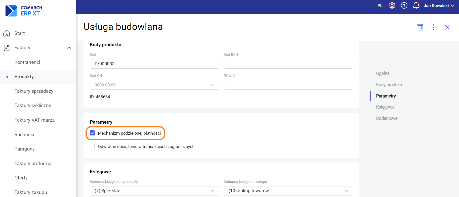 Na karcie produktu istnieje możliwość zaznaczenia parametru Mechanizm podzielonej płatności.