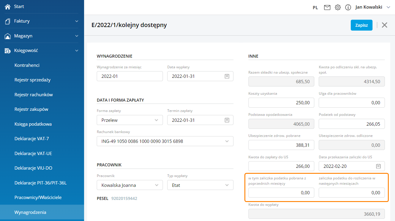 • Dodajemy wynagrodzenie z datą wypłaty w roku 2022