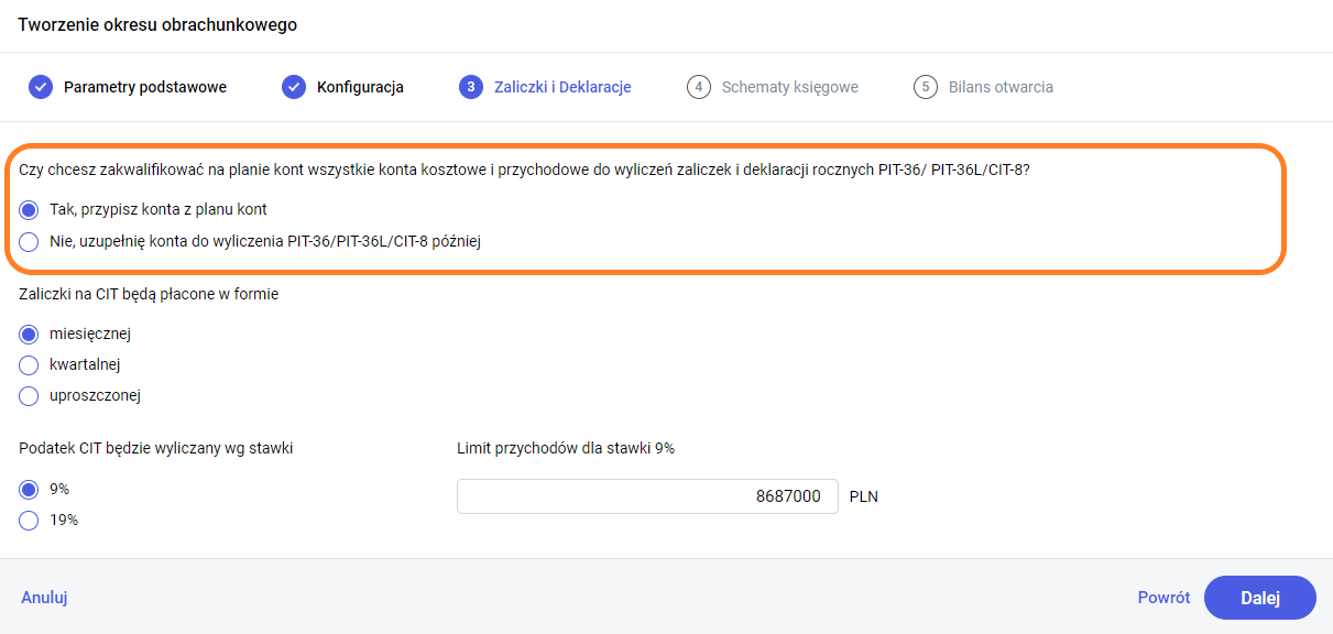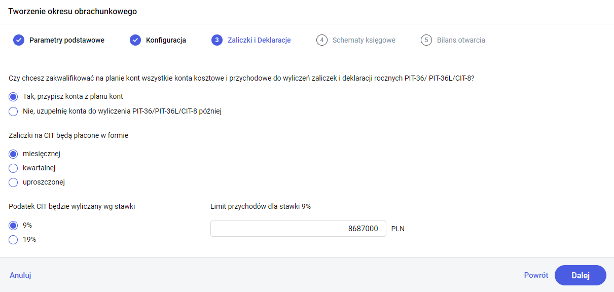 Kolejny krok to wybór stawki podatku CIT: