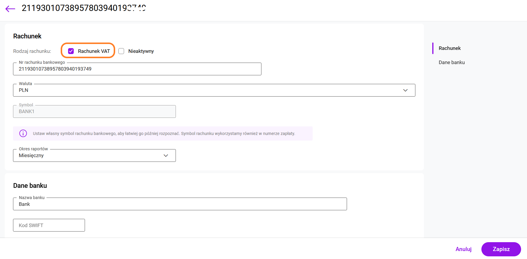 Rachunek VAT należy dodać z poziomu Ustawienia/ Metody płatności.