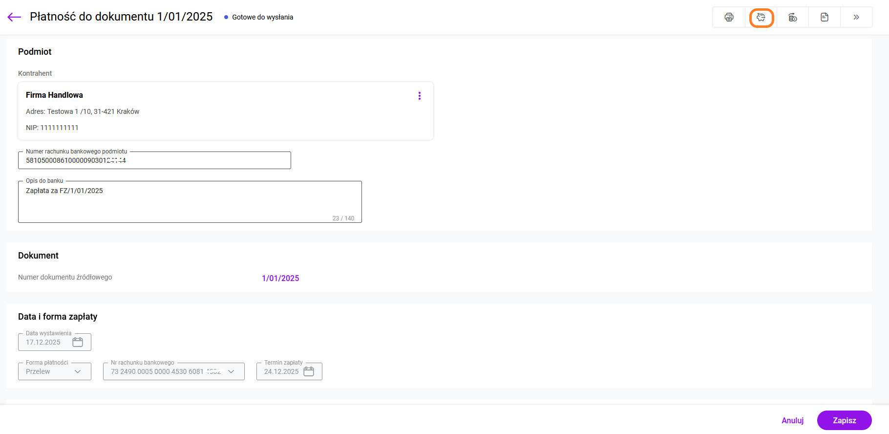 • Numer rachunku kontrahenta