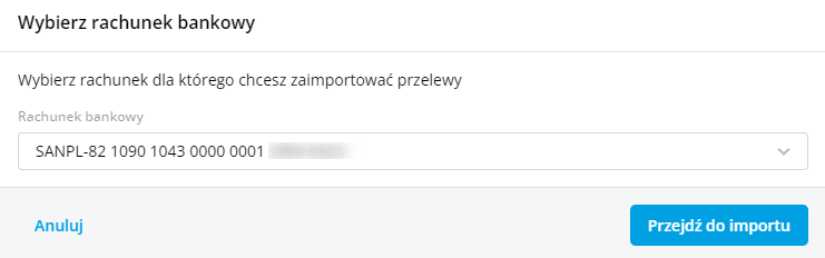 Po wybraniu opcji Importuj pojawi się okno, na którym należy wybrać rachunek bankowy, z którego przelewy będą importowane: