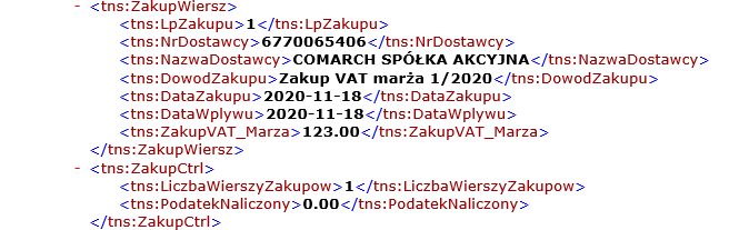 W wierszu ZakupVAT_Marza wykazywana jest kwota brutto dokumentu.